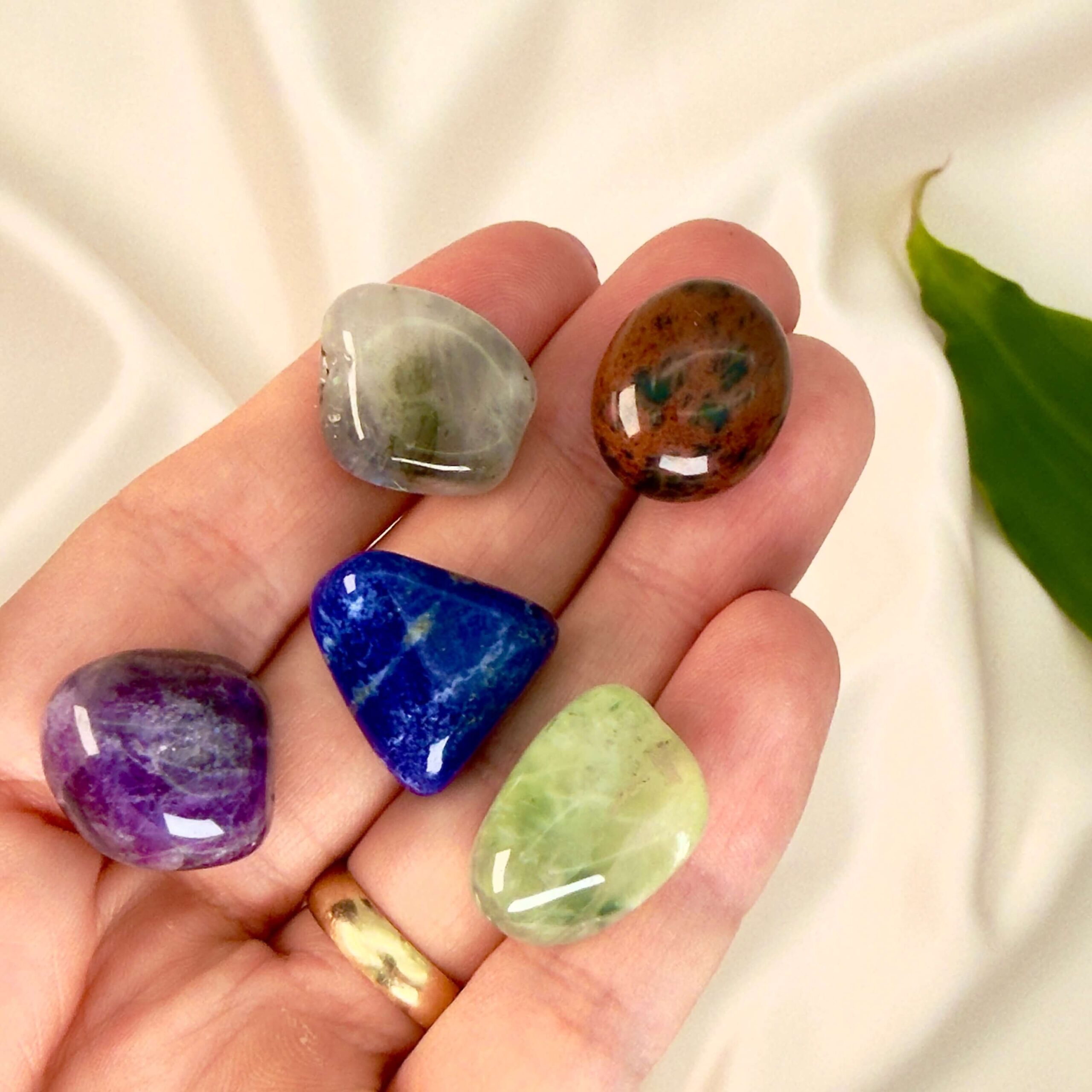 Dette healingssæt støtter dig i at åbne din intuition, styrke forbindelsen til dit højere selv og skabe ro på din spirituelle rejse. Krystallerne arbejder sammen om at bringe indsigt, klarhed og beskyttelse, så du trygt kan udfolde din indre visdom og åndelige bevidsthed.