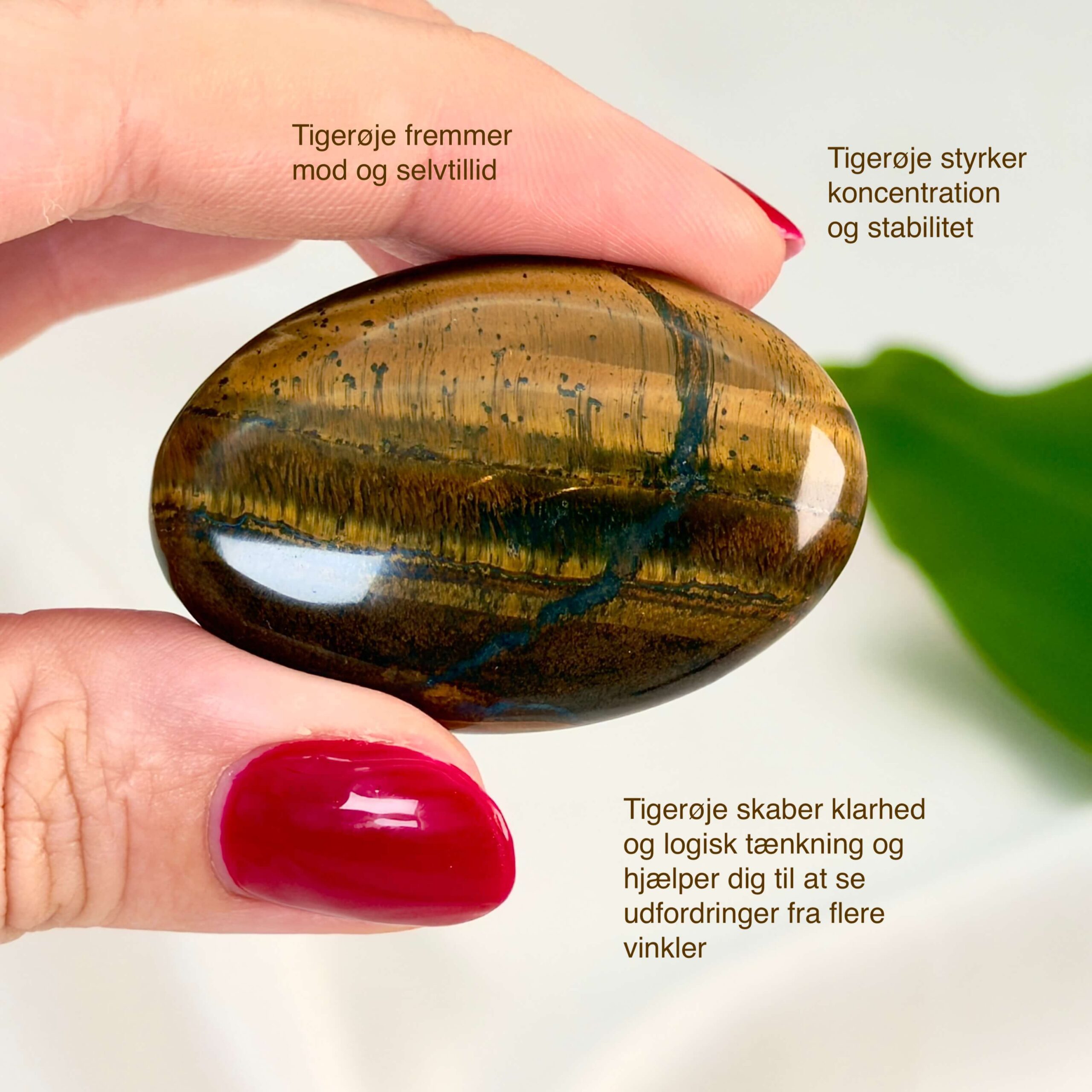 Styrke og mod: Tigerøje håndsten hjælper dig til at handle og stå fast