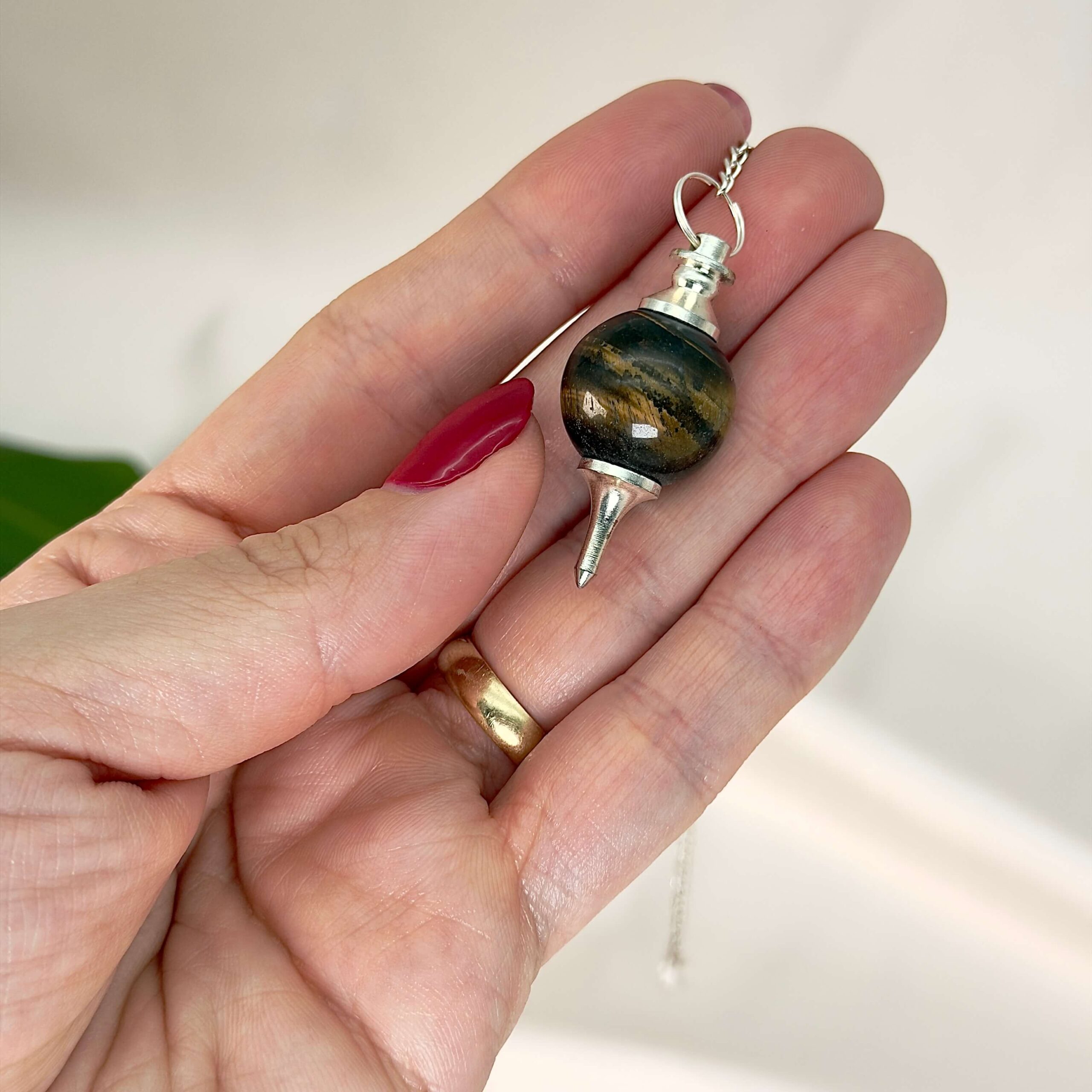 Dette Tigerøje pendul er specielt udvalgt af Markus. Prisen er for ét pendul. Pendulet måler 20 cm og vejer 12g inklusiv kæde.